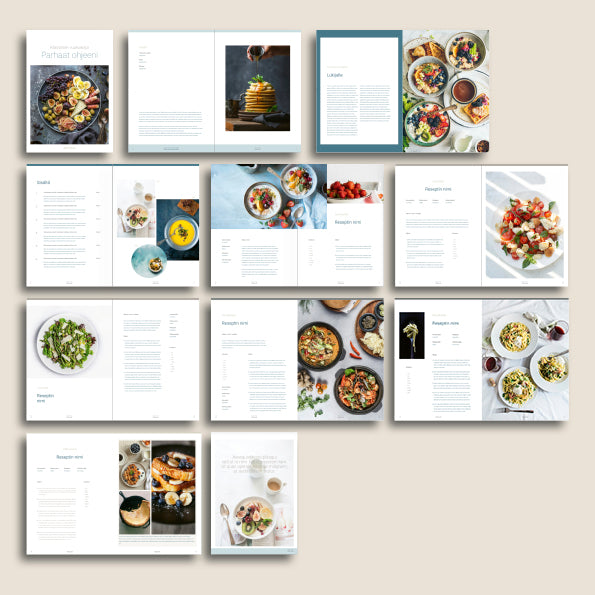 ladattaviin oppaisiin liittyen kirjantekoon, ulkoasun suunnitteluun ja taittamiseen.